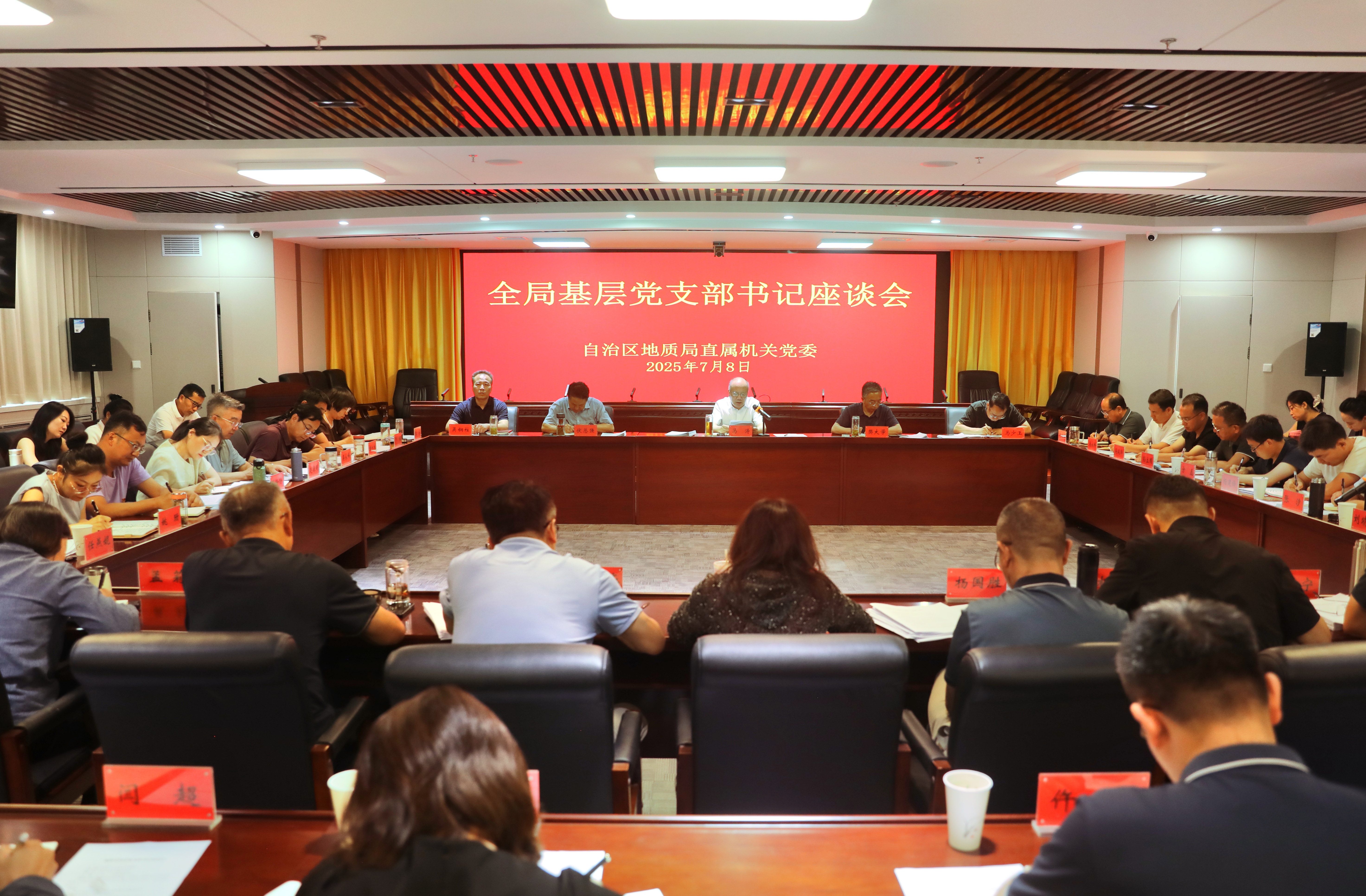 7月8日,自治区地质局召开基层党支部书记座谈会。局党组副书记马涛同志主持会议,局机关各党支部书记、局属各单位分管党建领导及党支部书记代表共50余人参加。