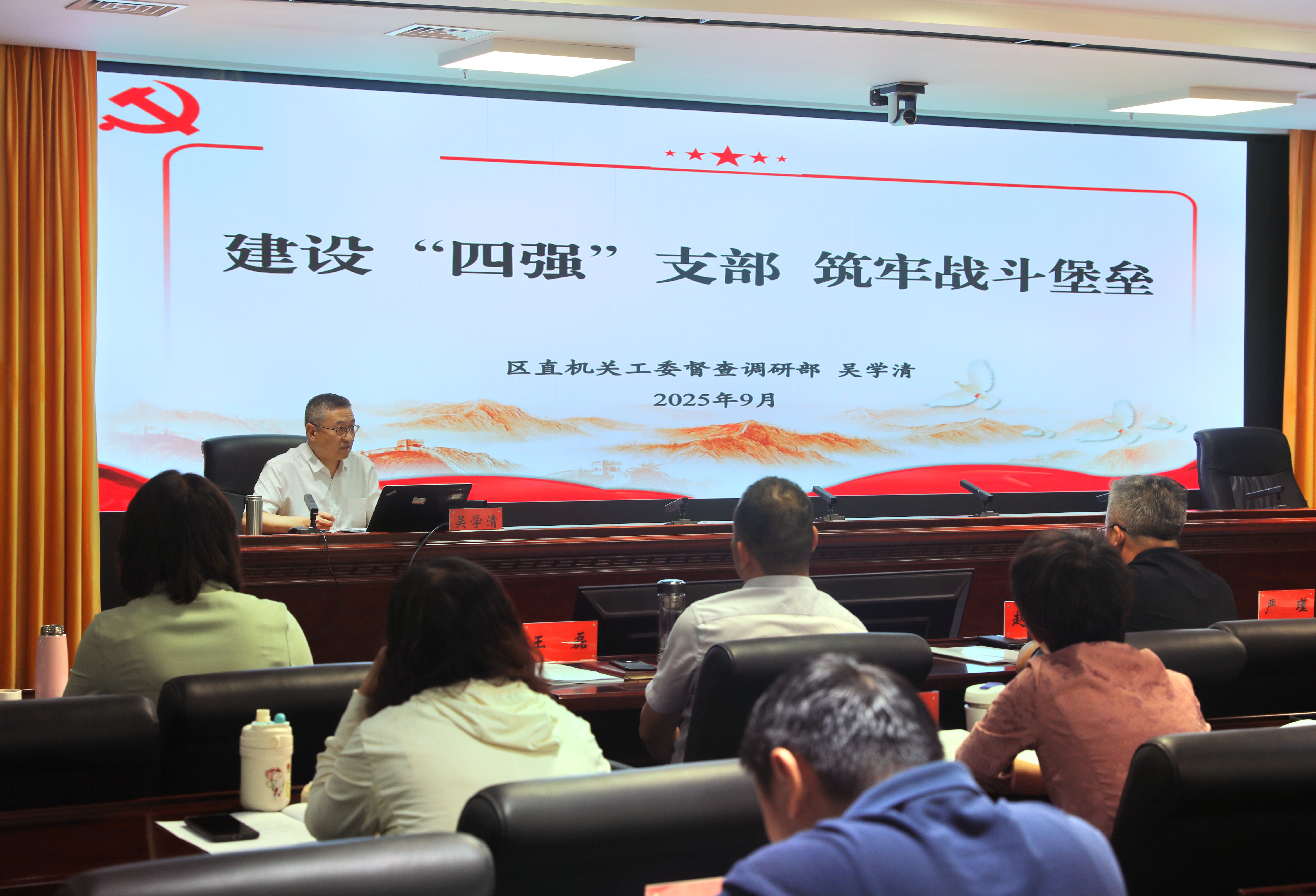案例教学方面,特邀区直机关工委业务骨干以《建强‘四强’党支部,筑牢战斗堡垒》为题,清晰阐释“四强”支部建设标准与实践路径,为基层支部提供可操作、可复制的“施工图”。