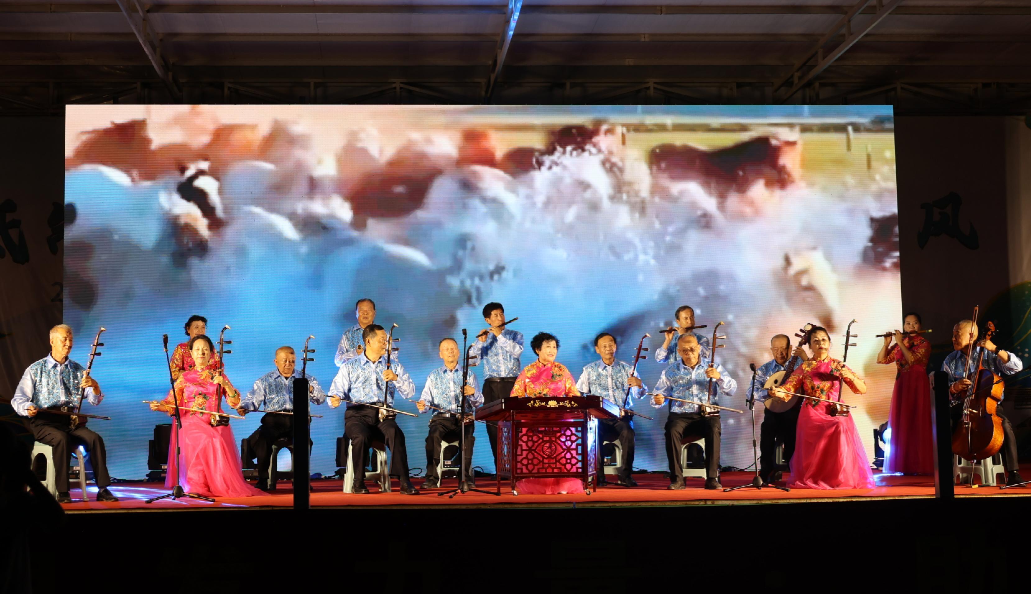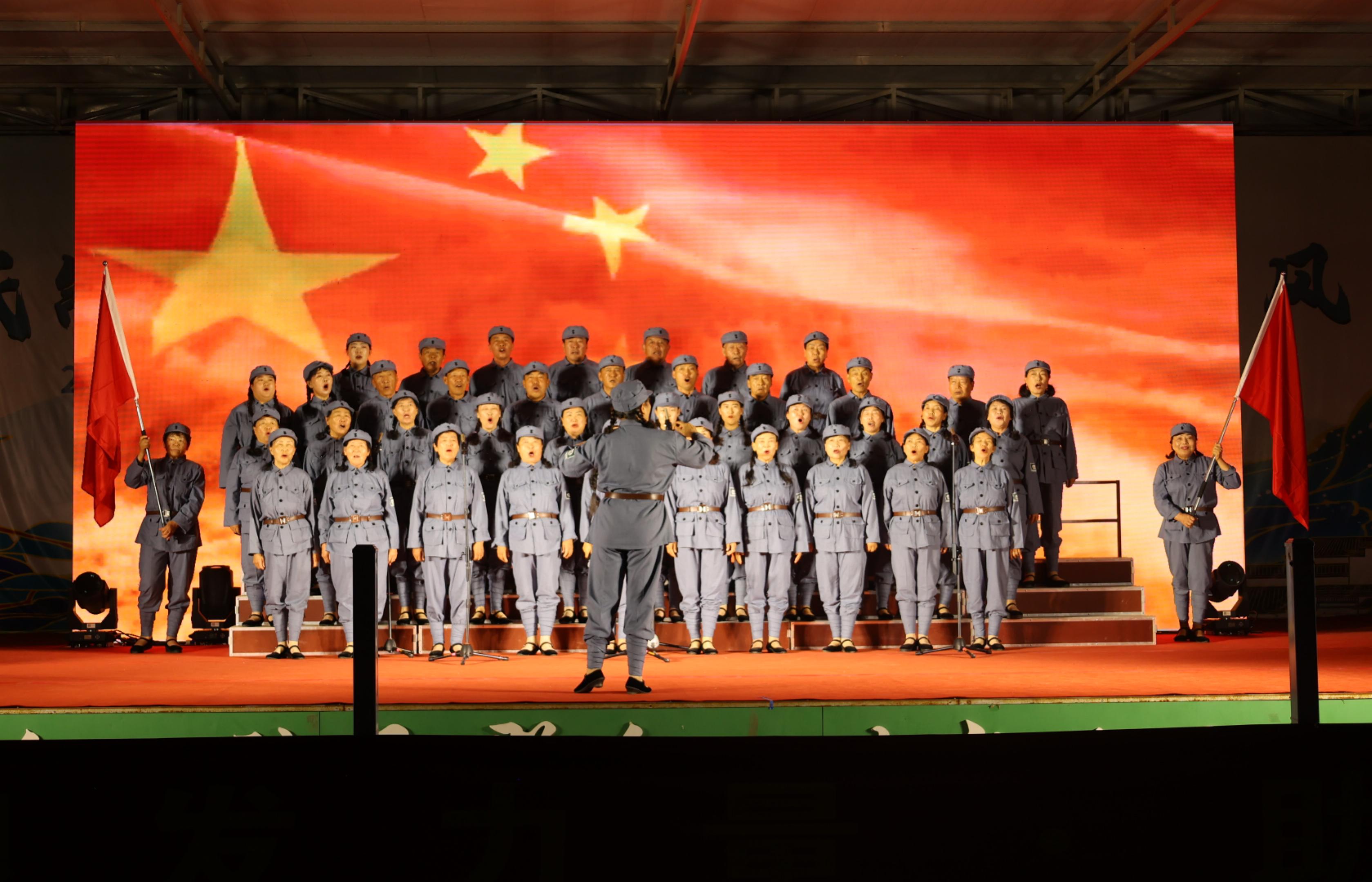 文艺演出在歌伴舞《绽放新时代》中拉开帷幕,演员们以优美舞姿展现时代风貌;歌曲《咱当兵的人》用铿锵旋律唱出老兵赤诚;说唱《移风易俗树新风》将文明理念娓娓唱进村民心坎;快板《防范老人被诈骗》以生动案例敲响反诈警钟……,14个涵盖舞蹈、歌曲、说唱、器乐合奏、快板等形式的精彩节目轮番上演,赢得现场观众阵阵掌声,大合唱《保卫黄河》将活动推向高潮,点燃观众爱国情怀。