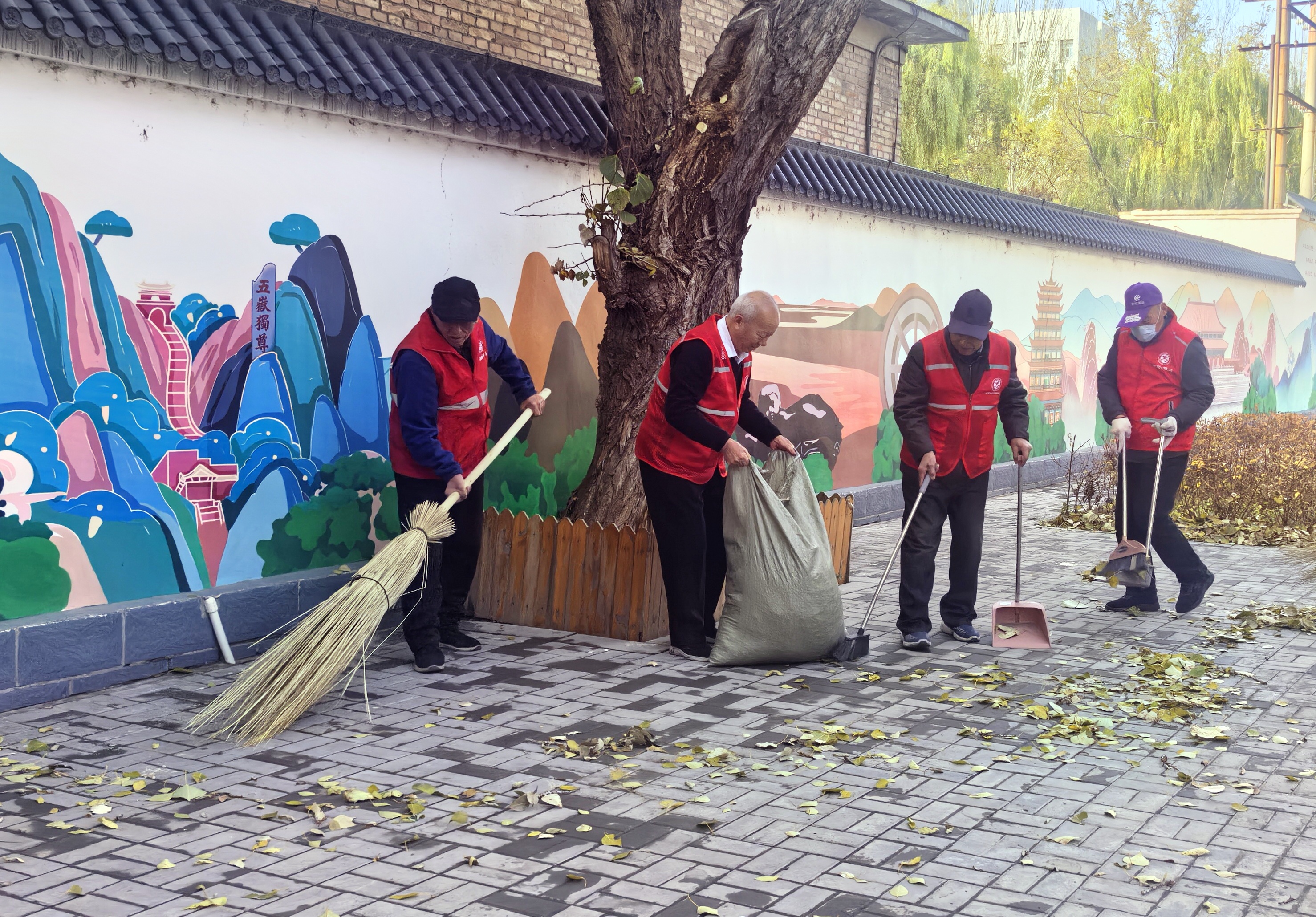 活动现场,身着红马甲的志愿者们精神矍铄、干劲十足,成为社区里最动人的“夕阳红”风景线。他们对小区的公共绿地、健身步道及周边道路展开“拉网式”清扫,细致清理落叶、纸屑、废弃杂物,社区环境焕然一新,道路洁净。在车棚整理现场,老同志们将自行车、电动车规范摆放,确保通道畅通,提升了公共空间利用率与整洁度。志愿者们还化身“安全巡查员”,对电动车充电设备进行排查,并提醒居民规范用电、安全充电。