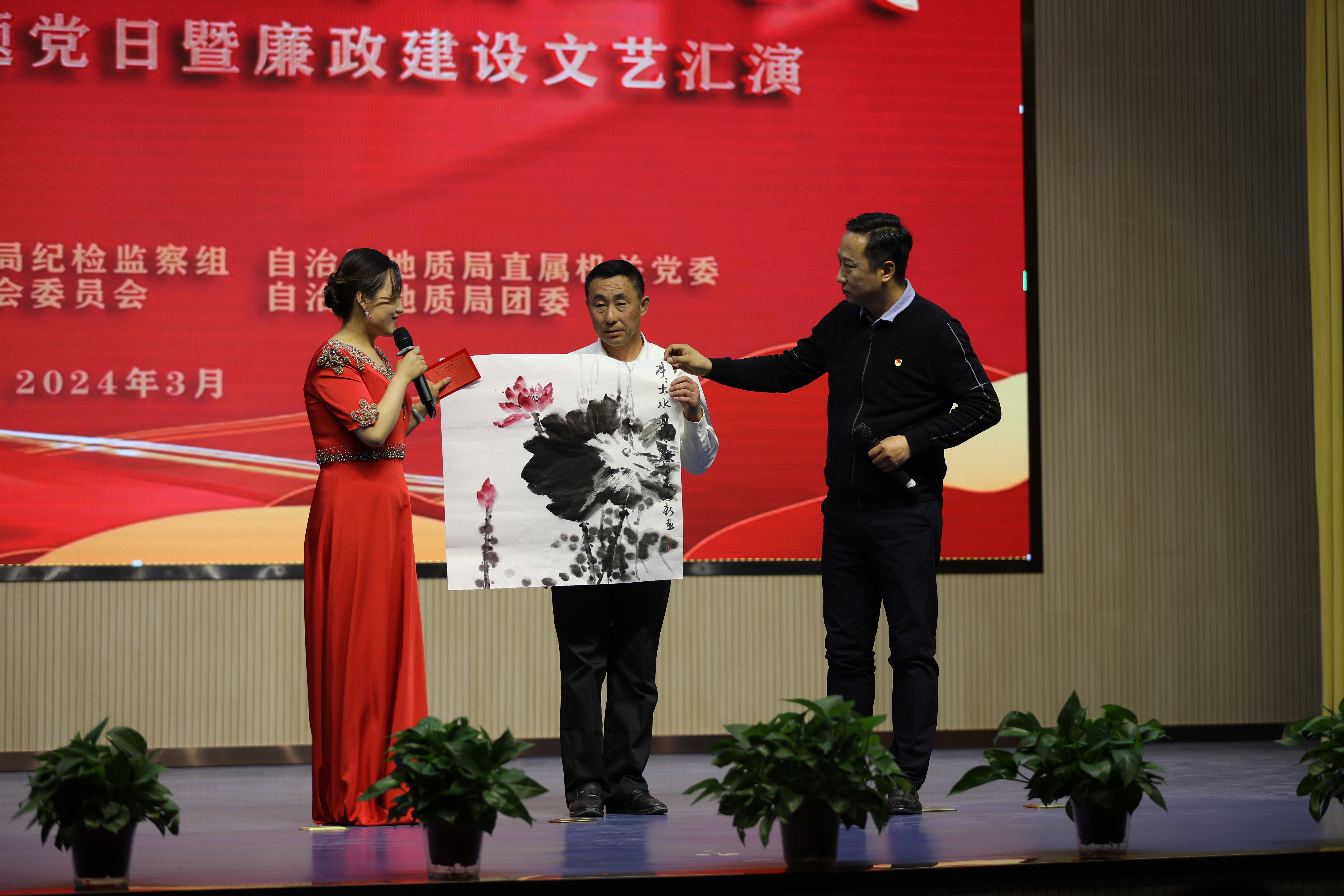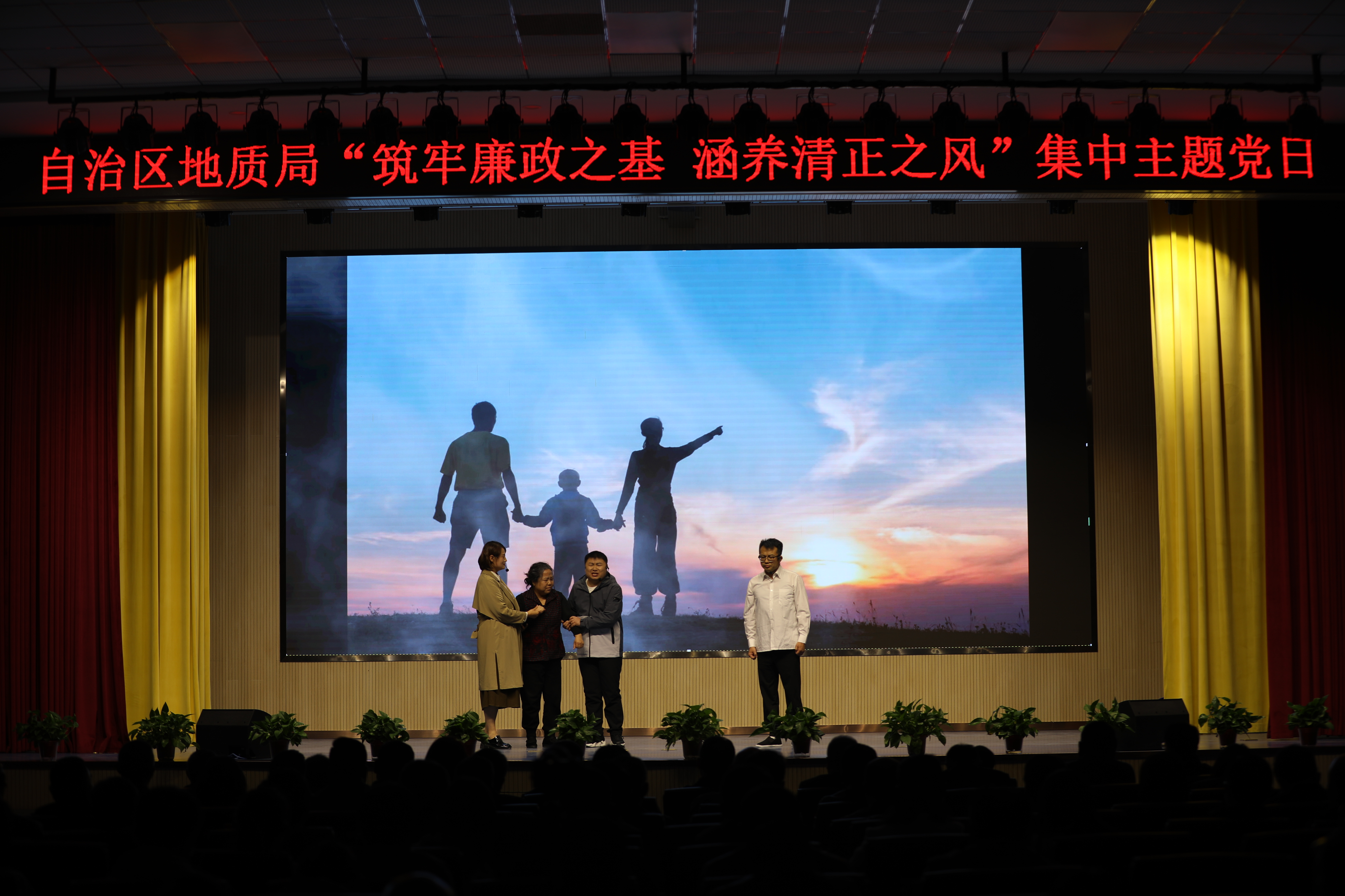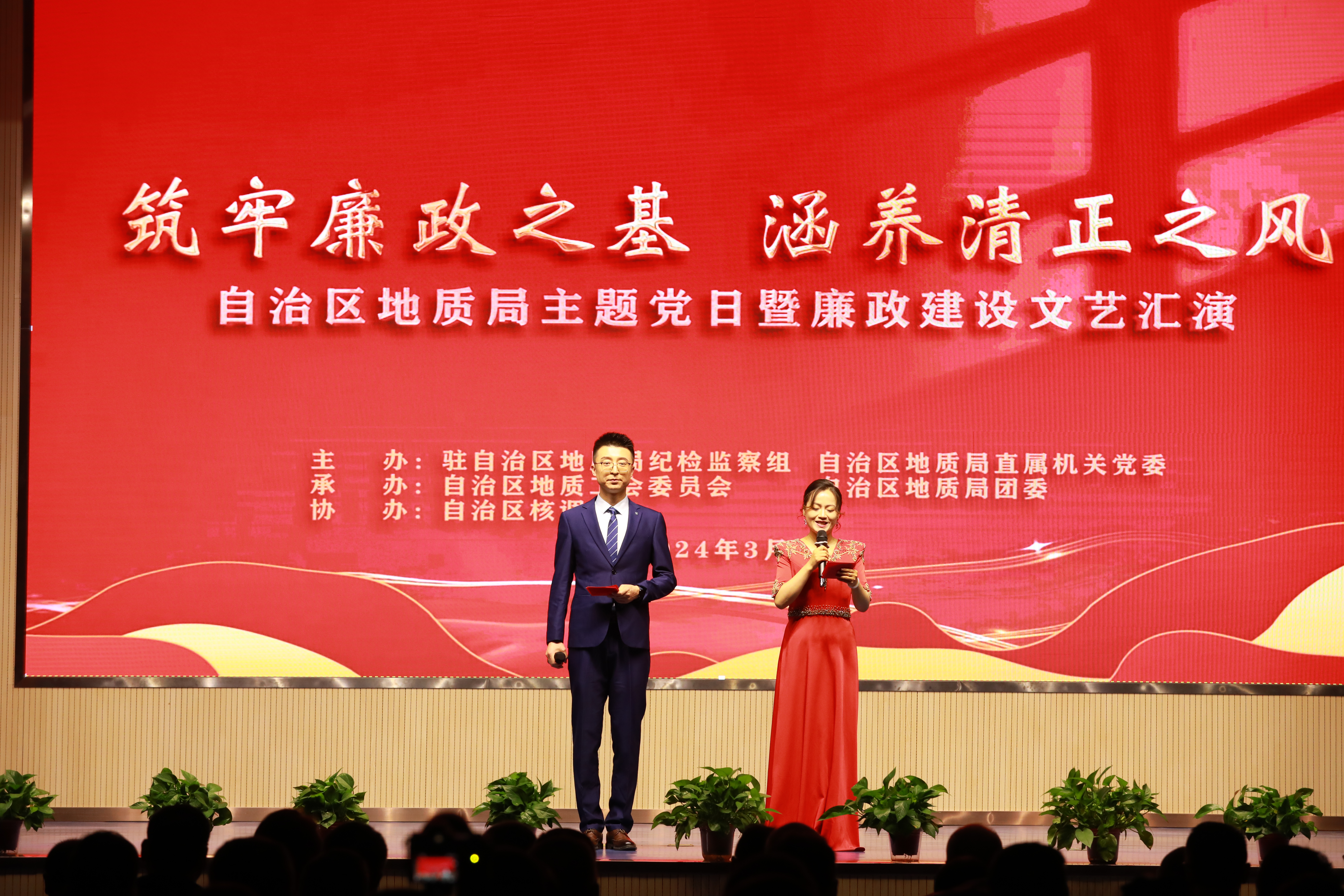在自治区“廉政警示教育周”活动期间,3月26日,自治区地质局举办“筑牢廉政之基 涵养清正之风”集中主题党日暨廉政建设职工文艺汇演活动,局领导马远征、吴加敏、马涛、于艳青,驻局纪检监察组副组长,局属单位班子成员,局机关全体人员和局系统党员干部职工共400多人参加活动。