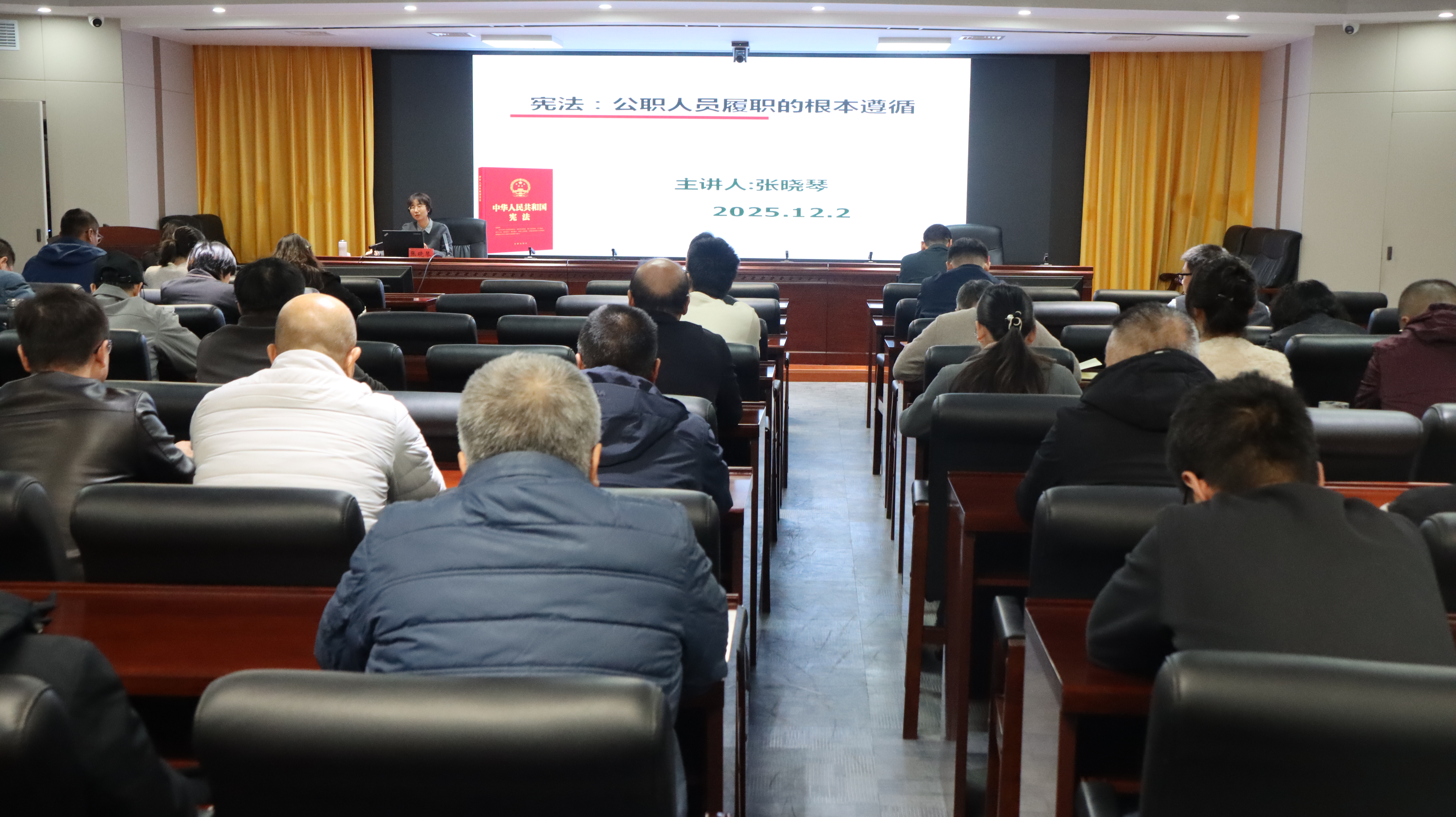 局机关联合地调院、物化院、服务中心举办宪法知识专题讲座,邀请北方民族大学法学院张晓琴教授授课。张教授围绕《宪法:公职人员履职的根本遵循》主题,系统阐释了习近平法治思想的核心要义、实践要求,回顾了党领导人民制定和实施宪法的光辉历程,引导干部职工强化宪法意识、厚植法治精神。