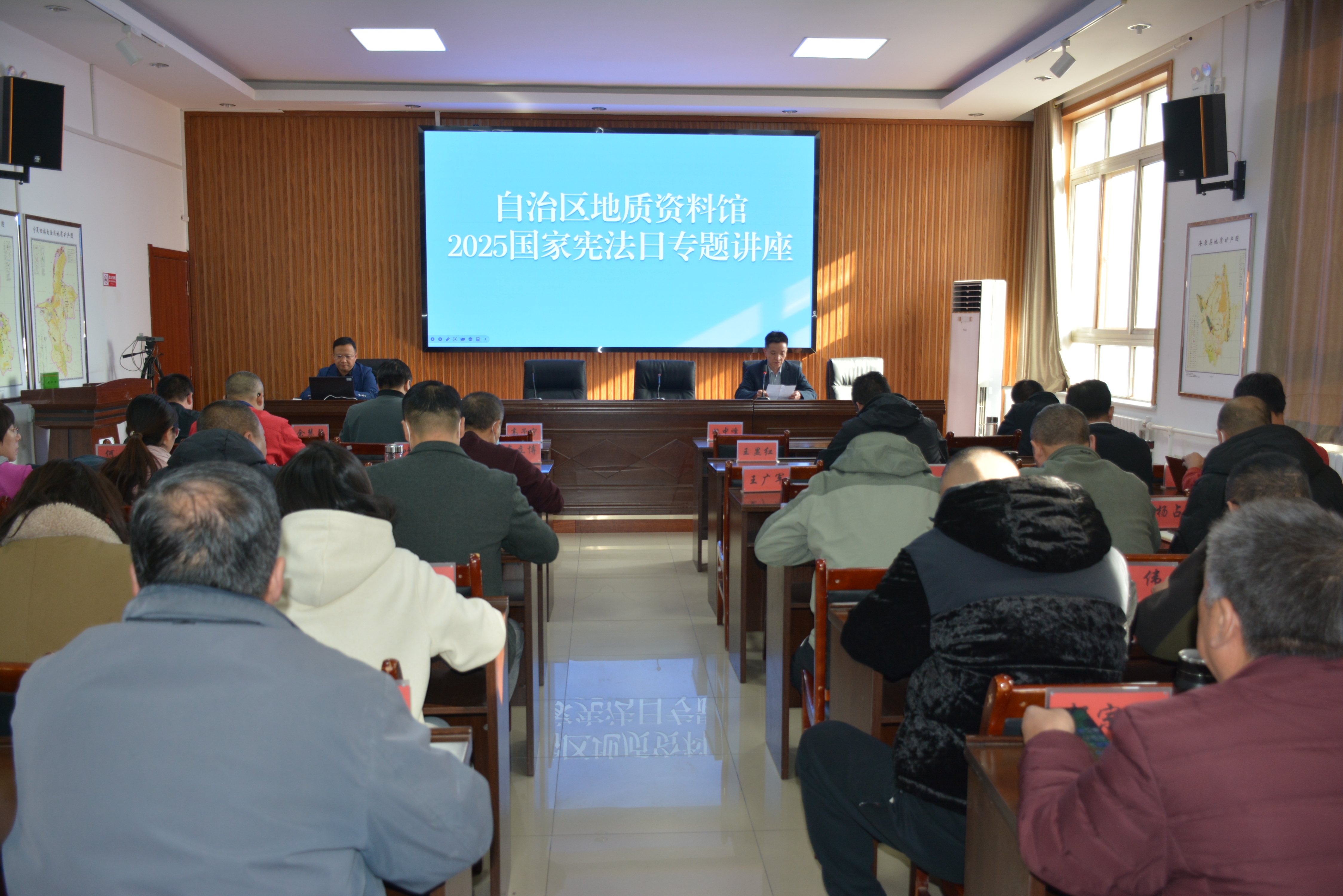 遥感院、矿调院联合开展专题辅导,邀请自治区党校周晓军教授深入解读习近平法治思想的形成逻辑与实践要求,邀请王婷律师讲解宪法的地位、发展历程与核心内容,阐明宪法与国家发展、人民生活的紧密联系,引导干部职工以法治思维赋能地质工作实践。
