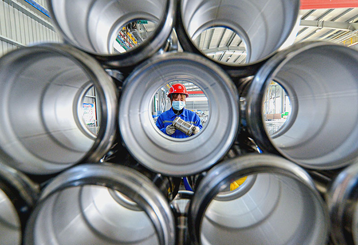 12月18日,工人在河北省邯郸市冀南新区的新兴特种管材有限公司生产车间内工作。新华社记者 王晓 摄