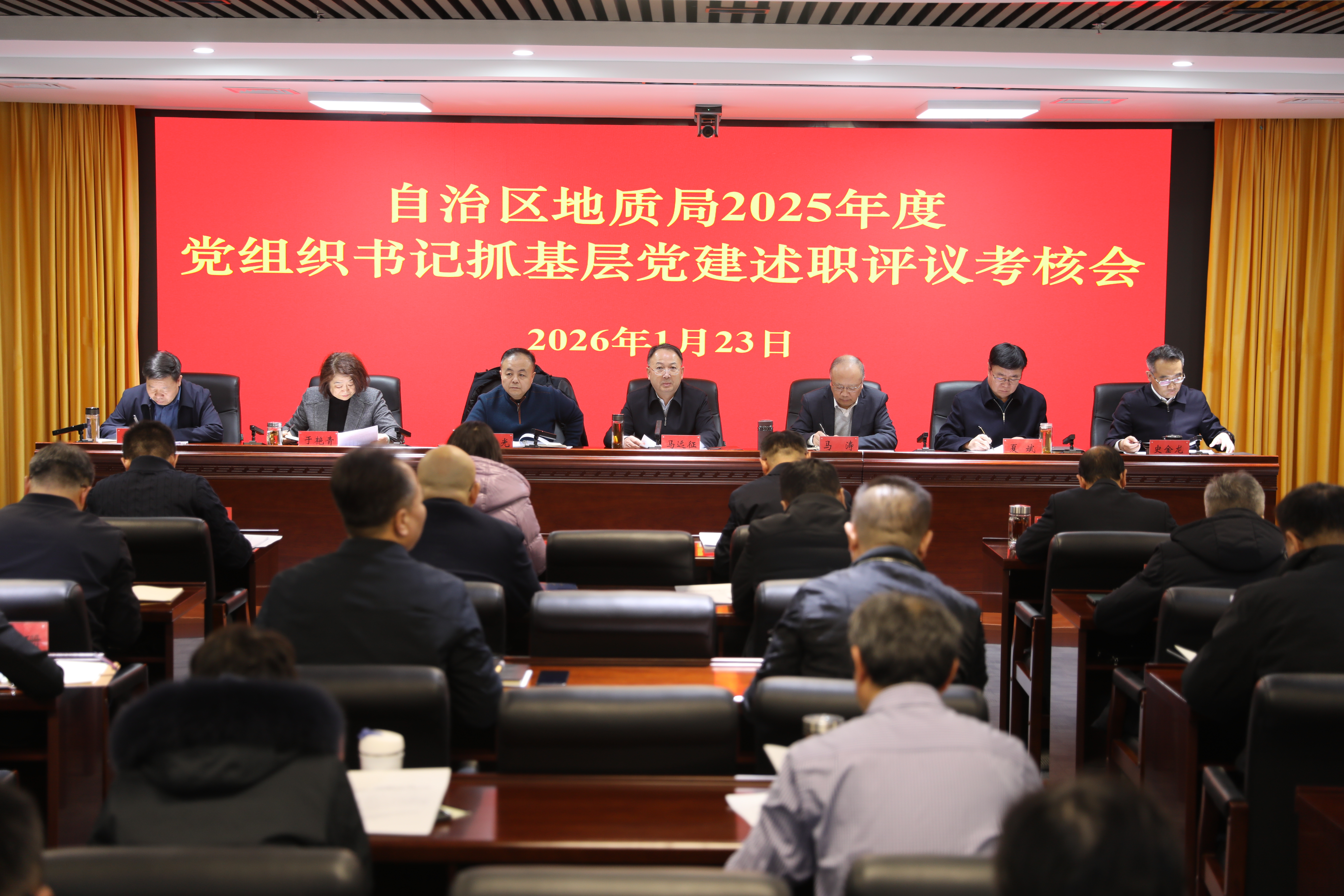 1月23日,自治区地质局召开2025年度党组织书记抓基层党建述职评议考核会。局党组书记、局长马远征主持会议并讲话,区直机关工委“三级三长”督导组到会指导,局党组班子成员、局总工程师,局属各单位党委(总支)书记、机关各党支部书记,局属各单位、局机关党员和群众代表参加会议。