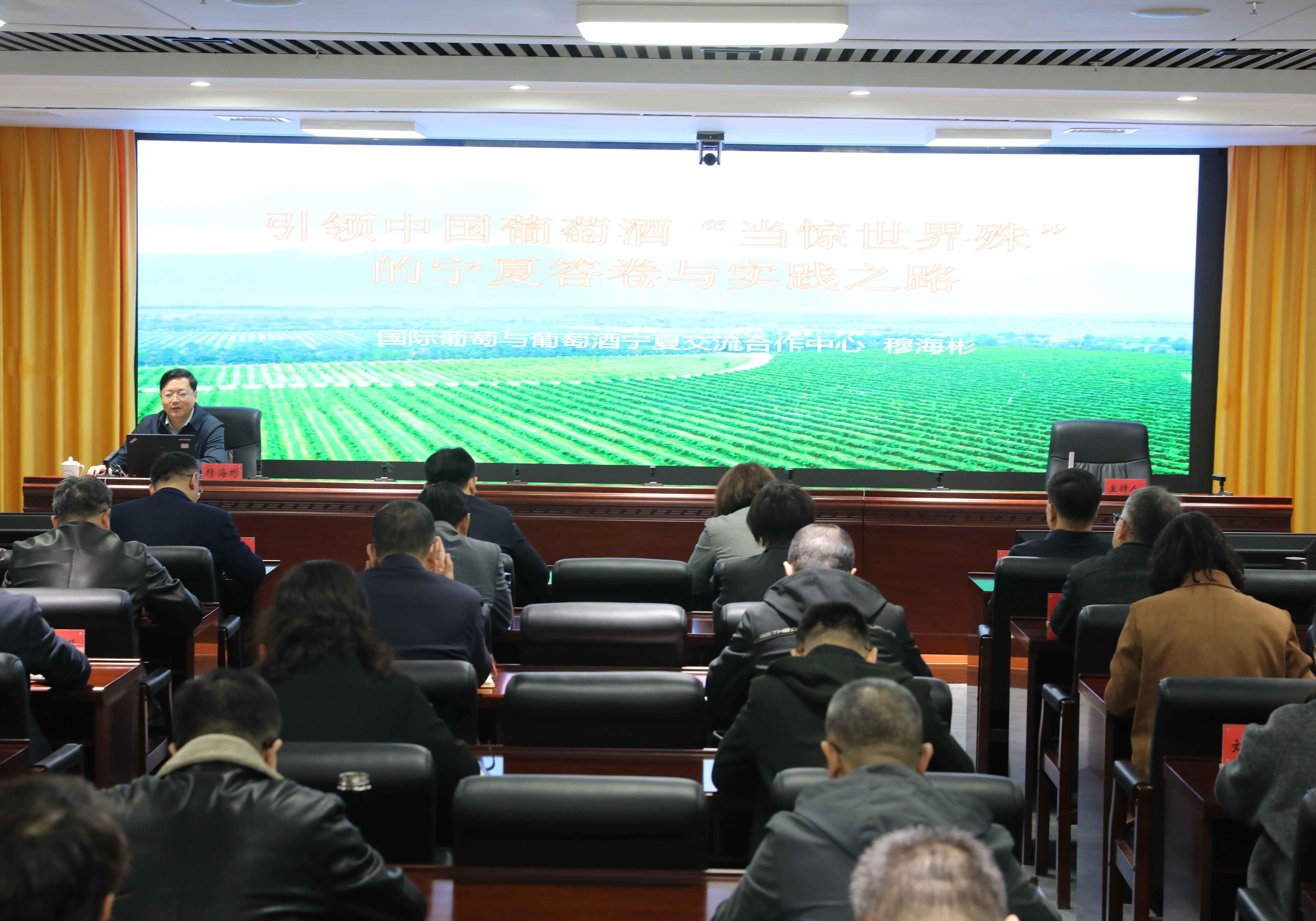 穆海彬主任以“引领中国葡萄酒‘当惊世界殊’的宁夏答卷与实践之路”为题,深入学习了习近平总书记对宁夏葡萄酒产业发展的殷切嘱托;系统讲解了宁夏葡萄酒产业的发展定位、战略布局和未来方向,以及贺兰山东麓特产区特色优势;围绕地表基质调查、种植环境监测、地质环境与葡萄酒风土关联等方面,阐述了地质工作与葡萄酒产业之间的密切联系。