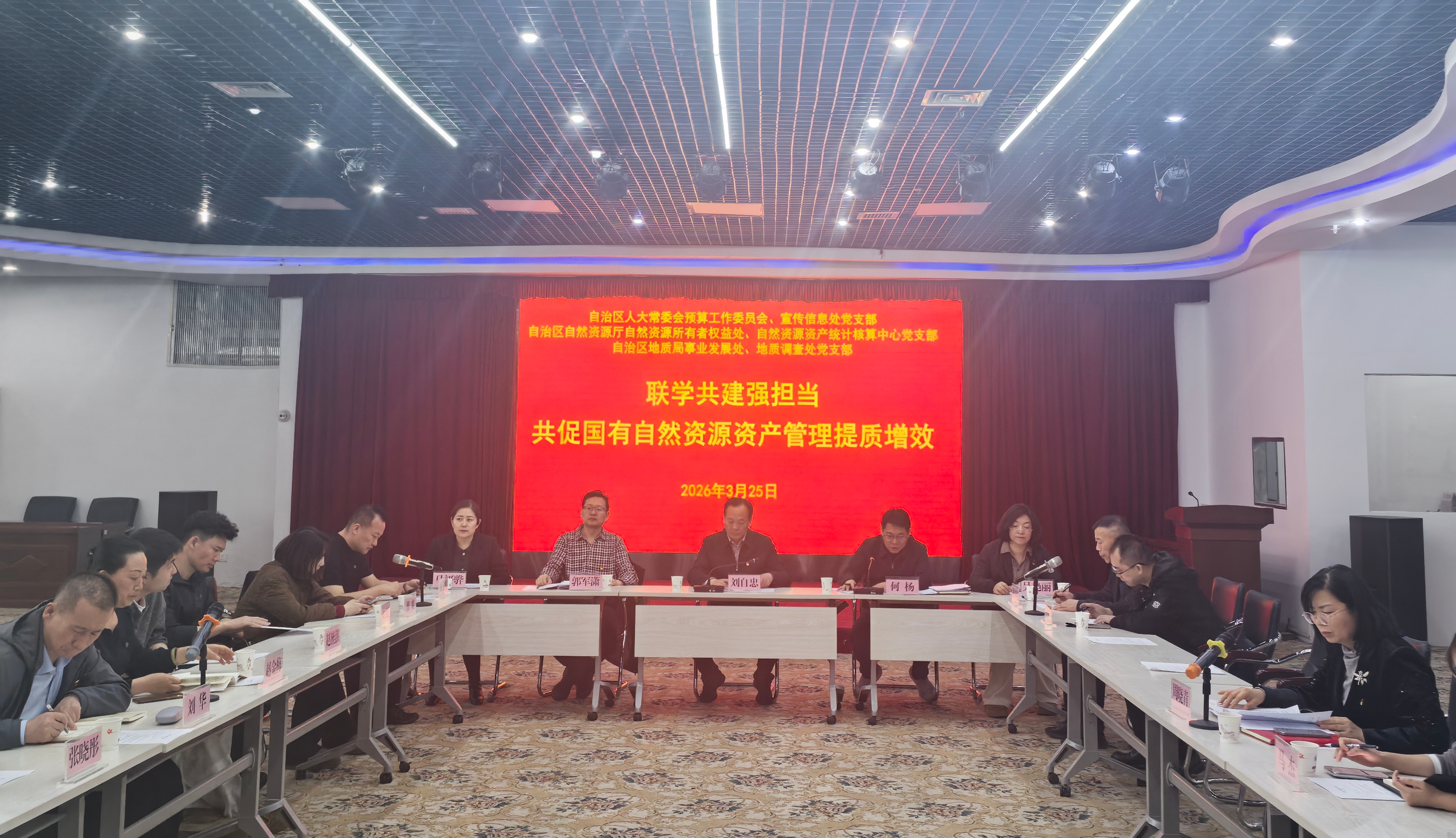 为牢固树立和践行正确政绩观,深化党建与业务融合发展,近日,地质局事业发展处党支部、地质调查处党支部与自治区人大常委会预算工作委员会党支部、自然资源所有者权益处党支部、自然资源资产统计核算中心党支部等在地质博物馆开展“联学共建强担当 共促国有自然资源资产管理提质增效”联合主题党日活动,引导党员干部校准政绩坐标、砥砺实干作风。