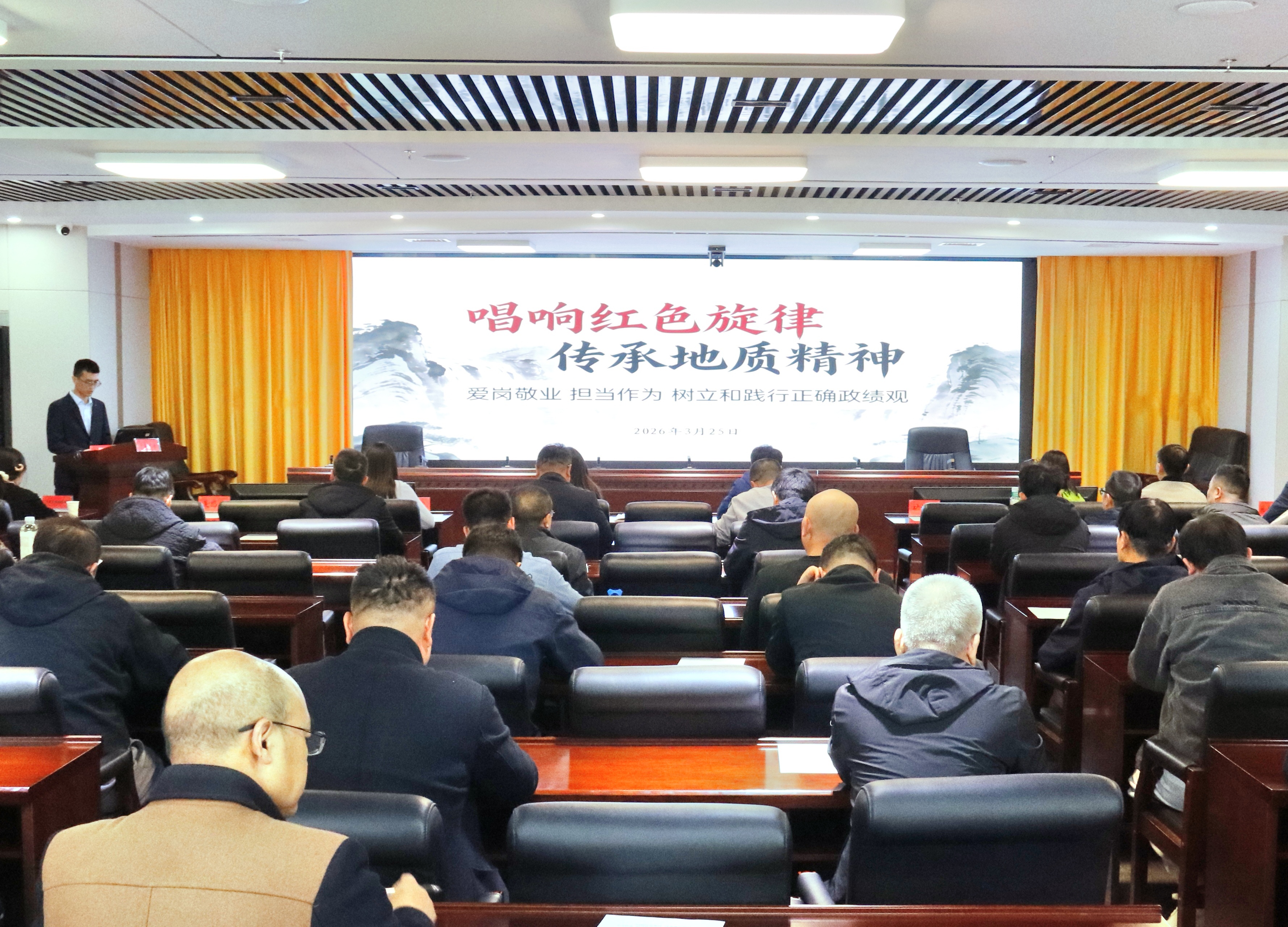 物化院联合地调院、矿调院、水环院、遥感院、核调院、地质资料馆、地质博物馆、服务中心等单位,开展“唱响红色旋律 传承地质精神 ”道德讲堂活动。活动按照 “省自身、唱歌曲、学模范、诵经典、谈感悟、送吉祥”六个环节有序推进。宁夏大学尚德书院师生现场演绎《长征组歌》,以红色旋律铸魂育人;离退休老同志杜占荣深情讲述老一辈地质人扎根一线、艰苦奋斗、敬业奉献的感人事迹;全体人员共同诵读中华经典名句,感悟勤勉敬业、求真务实、公道正派的精神内核;职工代表结合岗位实际分享学习感悟,进一步凝聚起担当作为、干事创业的思想共识。引导广大干部职工在学思践悟中坚定理想信念,以实干实绩树立和践行正确政绩观,奋力推动地质事业高质量发展。
