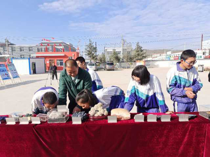 当天,宁夏地质博物馆“流动地质博物馆”第一站来到西吉县新营乡新营中学,开展爱心捐助、科普大讲堂、矿物岩石小课堂等活动,通过数字博物馆展示宁夏地质博物馆的精品标本及VR技术,让同学们体验深海探秘、地震逃生等,同时举办“描绘我的地球村”研学教育活动。
