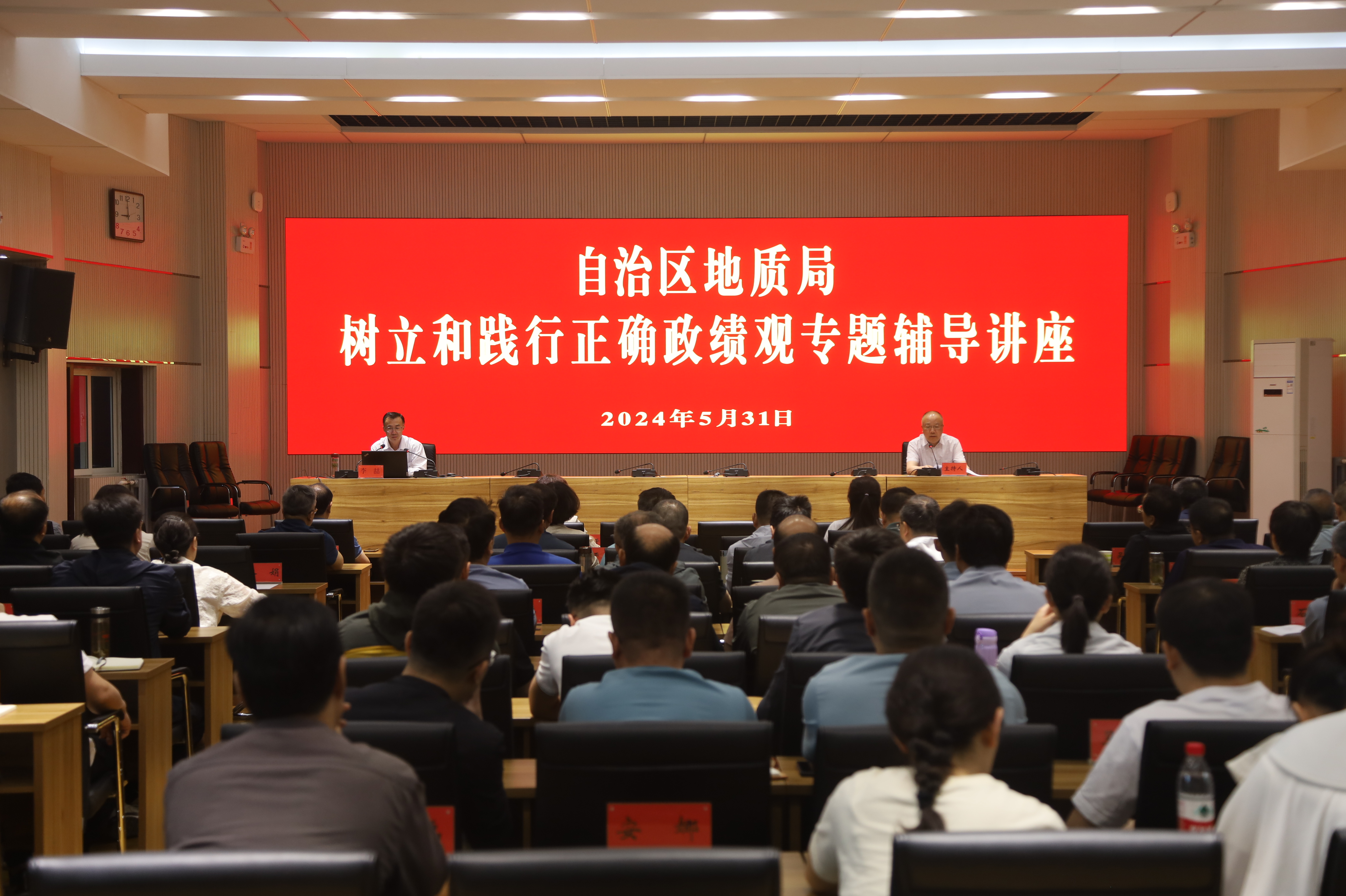 为深入学习贯彻习近平总书记关于树立和践行正确政绩观的重要论述,进一步教育引导全局各级领导干部树立和践行正确的政绩观。5月31日,自治区地质局举办树立和践行正确政绩观教育专题讲座,邀请自治区党校教授李喆授课,全局副处级以上领导干部,机关全体工作人员和局属各单位年轻干部代表100余人聆听了讲座。