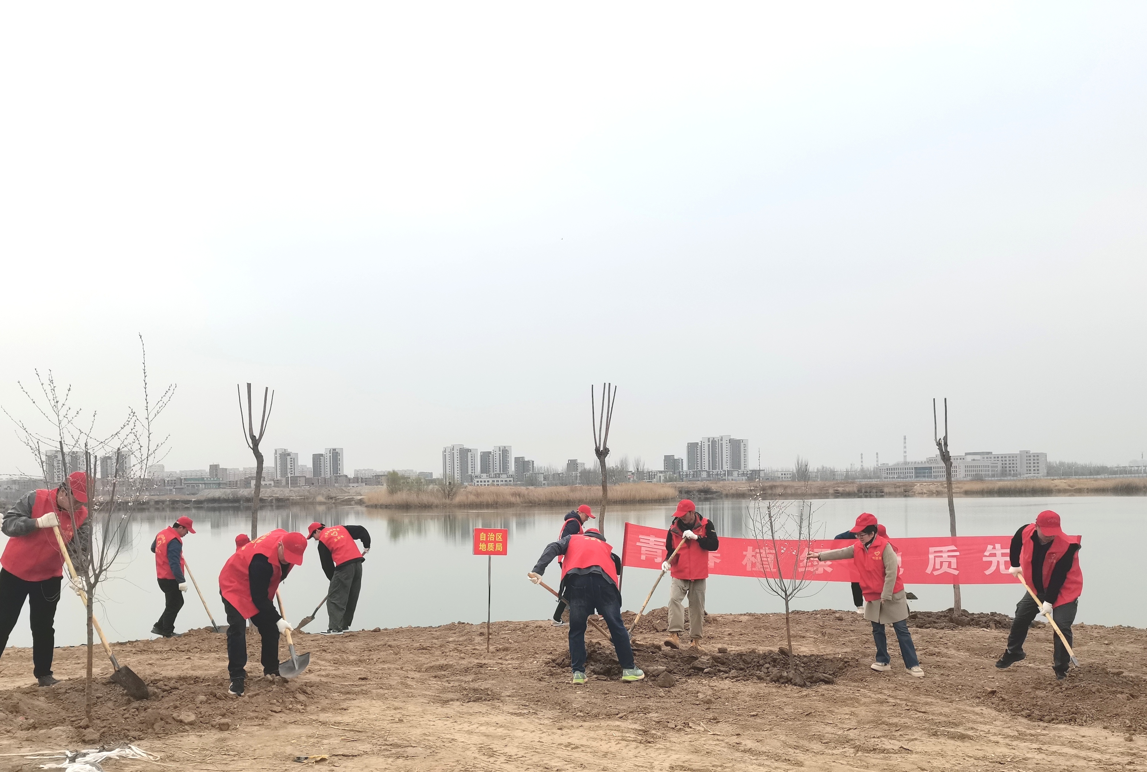 为深入贯彻习近平生态文明思想、践行绿色发展理念,引领广大青年争做生态文明建设的传播者、实践者、推动者,3月30日,地质局团委组织青年志愿者在银川市永宁县银子湖生态林片区开展义务植树活动。