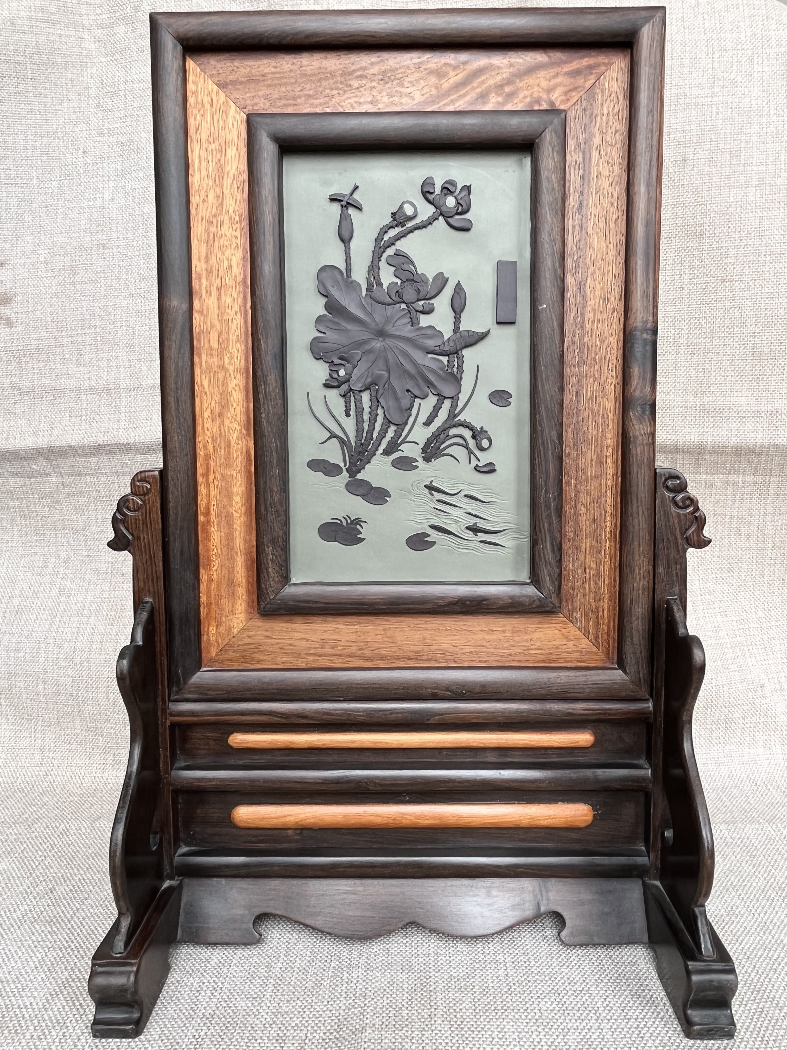 此次展演由自治区纪委监委主办,面向全区征集作品1265部,经专业集中评审,最终确定150部作品入围,涵盖文学类、视频类、手工艺类三大类别。《一品清廉》属原创手工艺类作品,以贺兰石为载体,运用虚实相生的浮雕技法,生动勾勒出“荷韵满塘”的画面,将贺兰石的天然肌理与莲花“出淤泥而不染”的廉洁内涵深度融合,用工艺美学诠释廉政文化,引导人们对廉洁的尊崇与坚守,助力营造风清气正的社会环境。