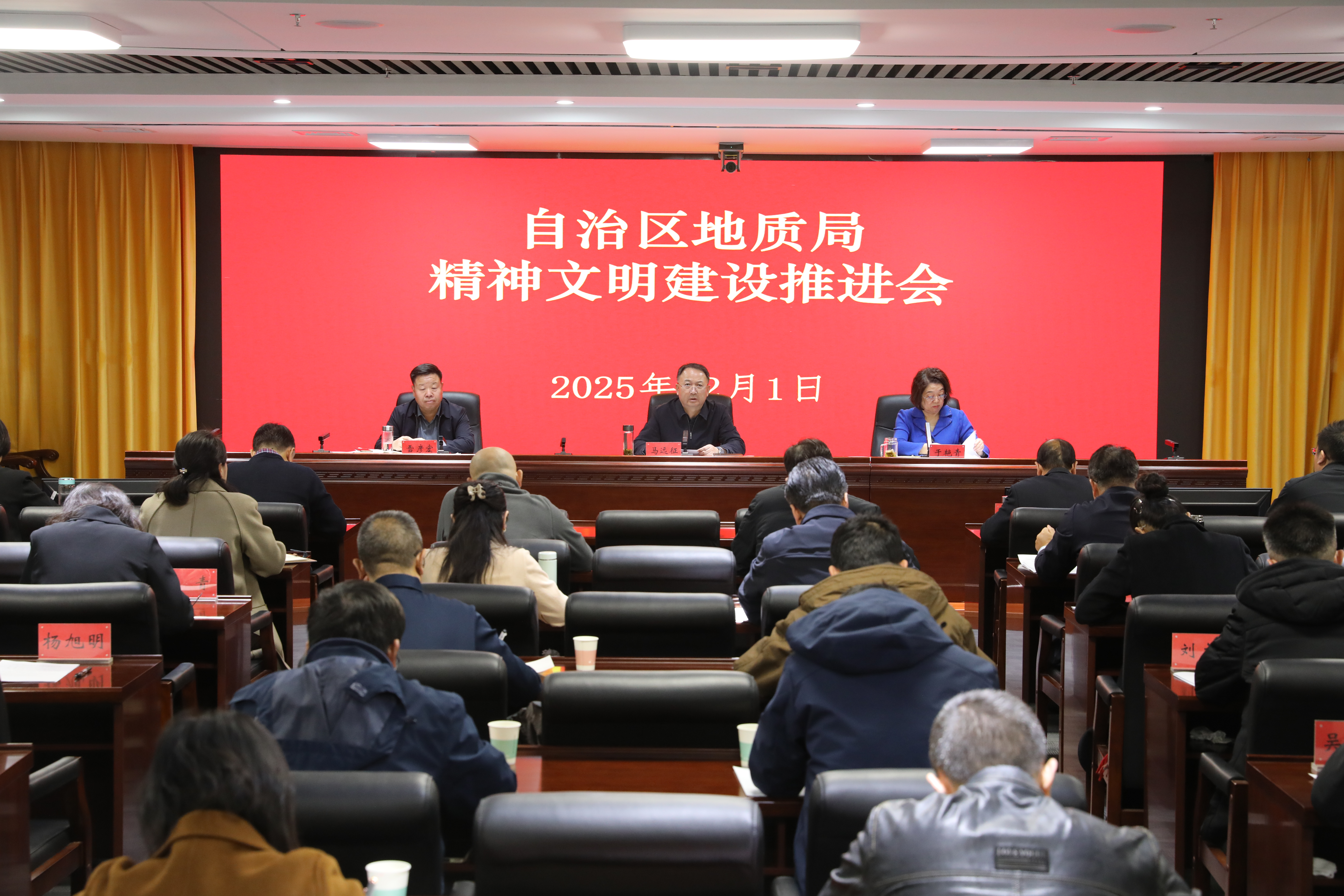 12月1日,地质局召开精神文明建设推进会,深入学习贯彻习近平总书记关于精神文明建设的重要指示精神,全面落实全国精神文明建设表彰大会部署及自治区相关工作要求,总结交流文明单位创建经验,部署下一步重点任务,动员全局上下珍惜荣誉、乘势而上,为推动地质事业高质量发展注入强劲精神动力。局党组主要负责同志出席会议并讲话,自治区文明办专职副主任马萍应邀作专题辅导报告。