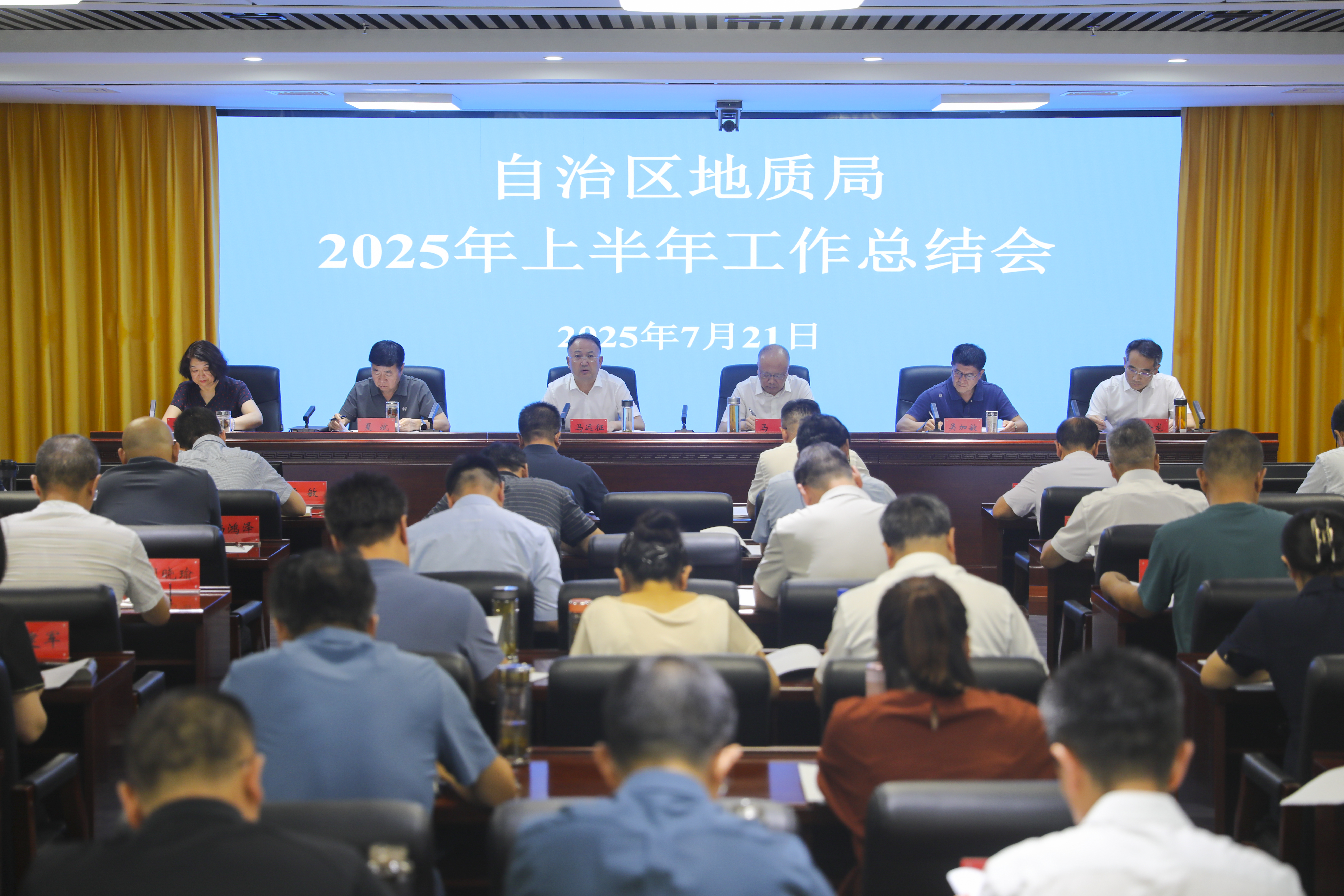 7月21日,自治区地质局召开2025年上半年工作总结会,深入学习贯彻习近平总书记考察宁夏重要讲话精神和近期重要讲话指示精神,传达学习全区上半年经济形势分析会精神,总结上半年工作、安排下半年任务,凝聚全局共识,动员干部职工锐意进取、奋发作为,坚定不移推进全年目标任务落实,助力地质事业高质量发展。局党组书记、局长马远征主持会议并讲话。